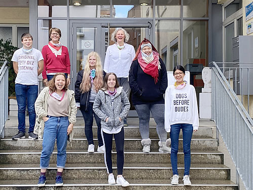 Foto: Ein herzliches Willkommen an der Max-Gutknecht-Schule für die Schülerinnen des Ausbildungsberufes der FP HW 1 und 2 mit ihren Fachlehrerinnen Cäcilia Göppert und Waltraud Stützle