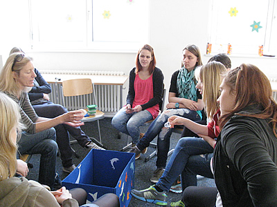 Das Glücksrad, bei dem verschiedene Fragen beantwortet wurden. Eine Pantomime-Station, an der Gefühle dargestellt und erraten wurden. Auch die Übertragungsmöglichkeiten des HI-Virus wurden angesprochen. Außerdem lernten die Jugendlichen verschiedene Verhütungsmittel sowie den Schutz vor dem HI-Virus kennen. Die Schülerinnen und Schüler zeigten sich sehr interessiert und stellten viele Fragen. Auch in der Reflexionsrunde konnte man sehen, dass die Jugendlichen durch ihre aktive Mitarbeit viel gelernt haben.
