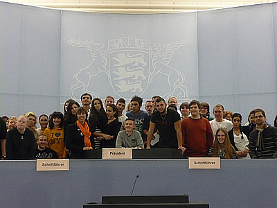 Foto 4: Schüler, Lehrer und Ausbilder als "Landtagsabgeordnete"