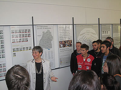 Foto 1: MdL Frau Dr. Stolz mit den Schülern, Lehrern und Ausbildern