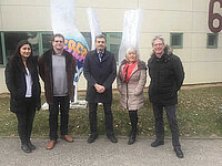 Bild oben: Die Schulleiterin Claude Cognard (EREA.Jean Isoard/Mongeron, rechts) und Roland Groner (Max-Gutknecht-Schule Ulm, Mitte), zusammen mit Jean-Luc Morin (EREA, 2.v.l.) und den MGS-Kollegen Sema Ülker und Winfried Stahl (ganz rechts) vor der französischen Bildungseinrichtung in Mongeron/Versailles.