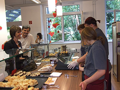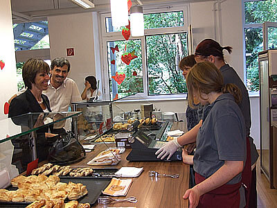 Foto 2: Besuch im Bäckereiverkauf: Frau Dr. Stolz mit Schulleiter R. Groner