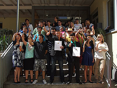 Foto 1 u.2: Feierliche Verabschiedung der Absolventen in der Aula